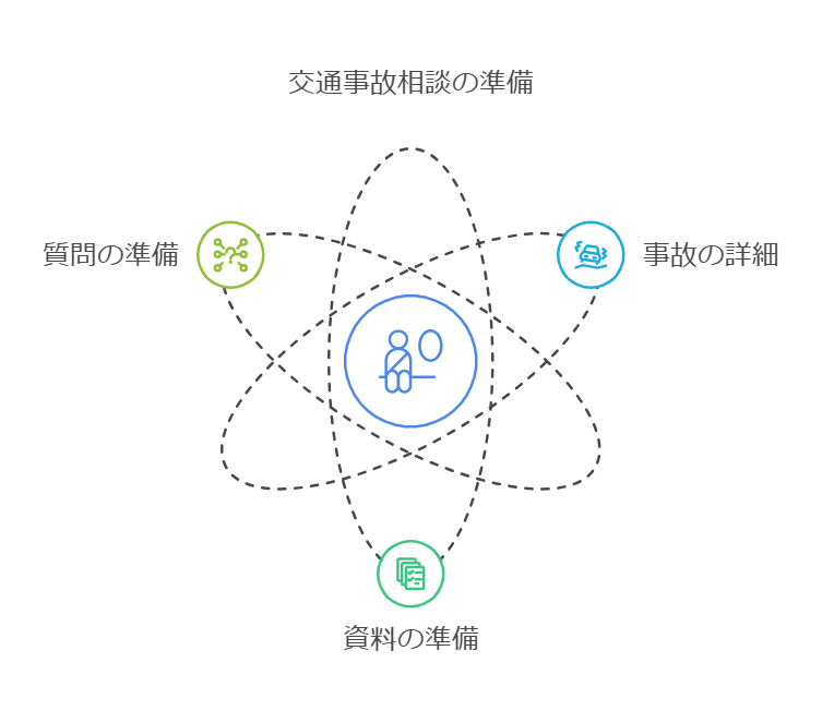 まずは弁護士に相談し、事故の状況や損害の内容などを説明します。特に、損害賠償額の提示書があれば、持参した方が良いです。